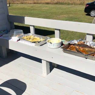 The warm welcome for the Bay Leaf Builders (who traveled 2 hours there and back seven times) included coffee and breakfast in the mornings and a full meal in the middle of the day, provided by the team of Ms. Janet Cary (who cooked but had to go to work so missed the picture!) Gracie George, Stella Barden, and Carolyn Greene, and for previous workdays, by Barbara Troy, Mary Simmons and Mrs. Kenneth Todd.